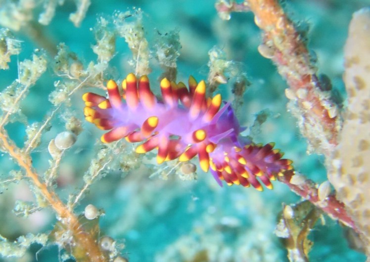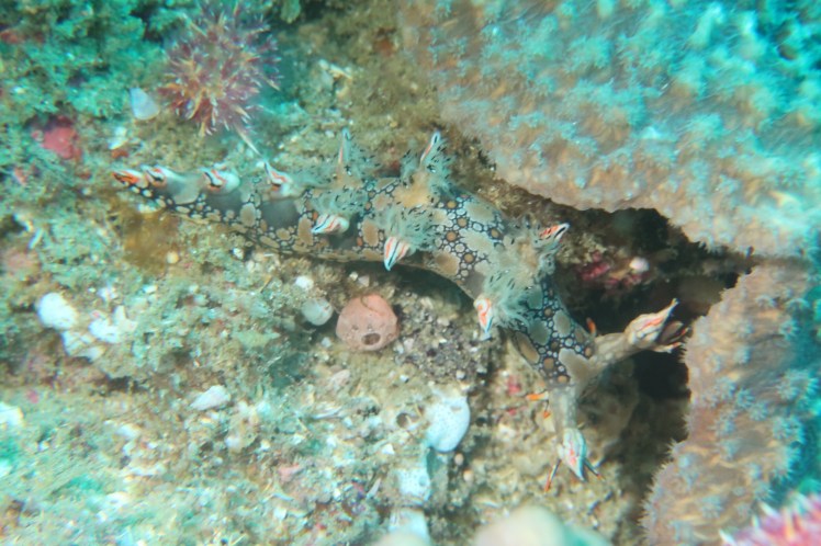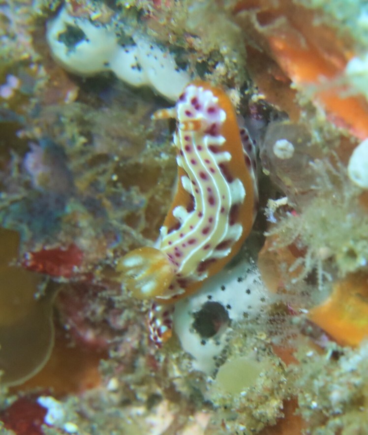 We are diving with backtobasics in Ponto du Ouro who we have dived with before. First dive though I manage to flood my underwater torch (total user error and hugely frustrating!). It was a clear water dive with amazing visibility though extremely cold, by their standards, with a thermocline delivering a bracing 19 degree water to us. We saw some of the usual things including large clams, nudibranch and potato grouper.